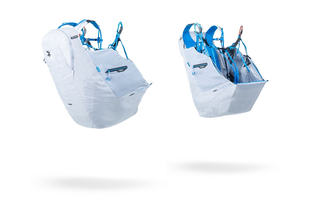 La plus petite taille de la sellette cocon, le NEO SUSPENDER 2.0 XS, est disponible pour les pilotes mesurant entre 1,50 m et 1,63 m.