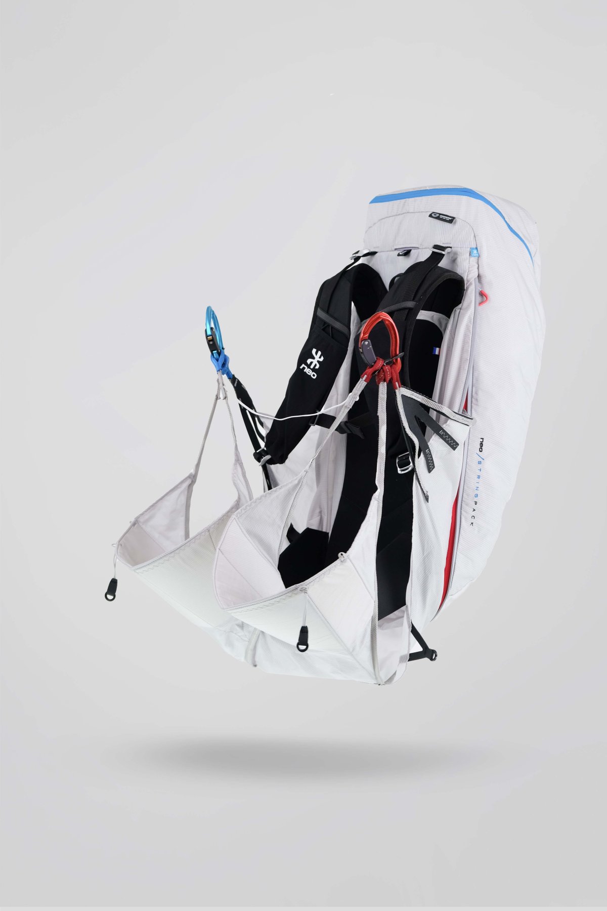 C’est le grand retour du Stringpack, presque 10 ans après la première version et un passage par le Shorty. Toujours le même concept, une sellette reconnue, le String 3.0, et un sac à dos, assemblés pour obtenir un sac/sellette convertible. Comme tous nos produits légers, le Stringpack est très simple d’utilisation et permet de ne se soucier que de l’essentiel : marcher et voler. L’utilisation de notre tissu ripstop avec du Dyneema offre un compromis légèreté et durabilité que nous avons longuement éprouvé.