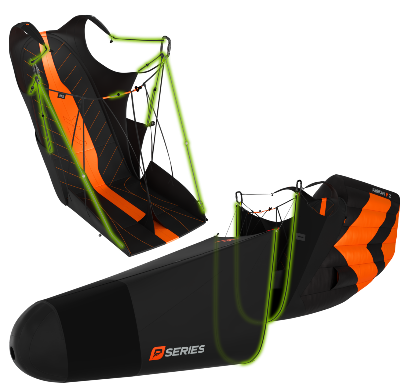 L’Arrow P 2 est très compacte et facile à plier. Grâce à sa structure optimisée et à ses matériaux légers mais robustes, elle peut être rangée dans un sac à dos de 50 L (voire moins en utilisant la protection gonflable Apair) avec le reste de votre matériel de vol. Une solution pratique pour les pilotes en quête de compacité et de performance.