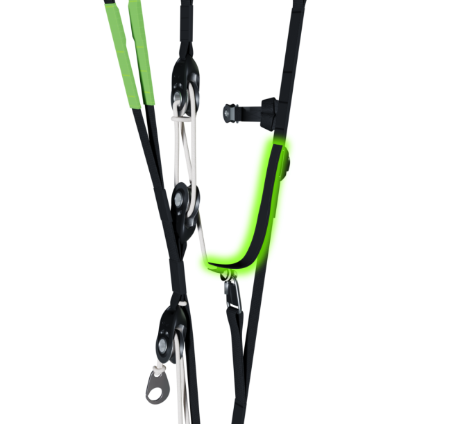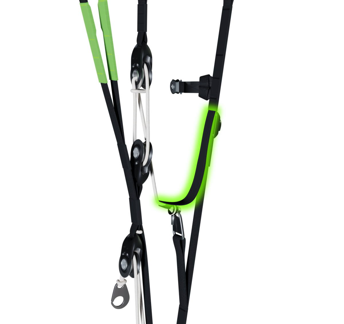 Le nouveau système C2B intégré aux élévateurs permet à cette voile 3 lignes d'être pilotée comme une voile 2 lignes. Cela permet de piloter et de diriger l'aile sans déformer le profil, même à haute vitesse.