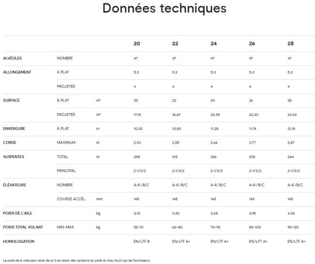 Une aile intuitive, stable et sûre présentant des caractéristiques et des performances améliorées par rapport aux versions précédentes. Le choix idéal pour la progression ainsi que pour découvrir de nouvelles façons de voler. Une maniabilité optimale pour améliorer l’expérience de vol du pilote.