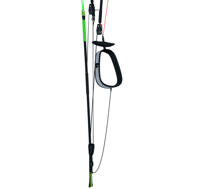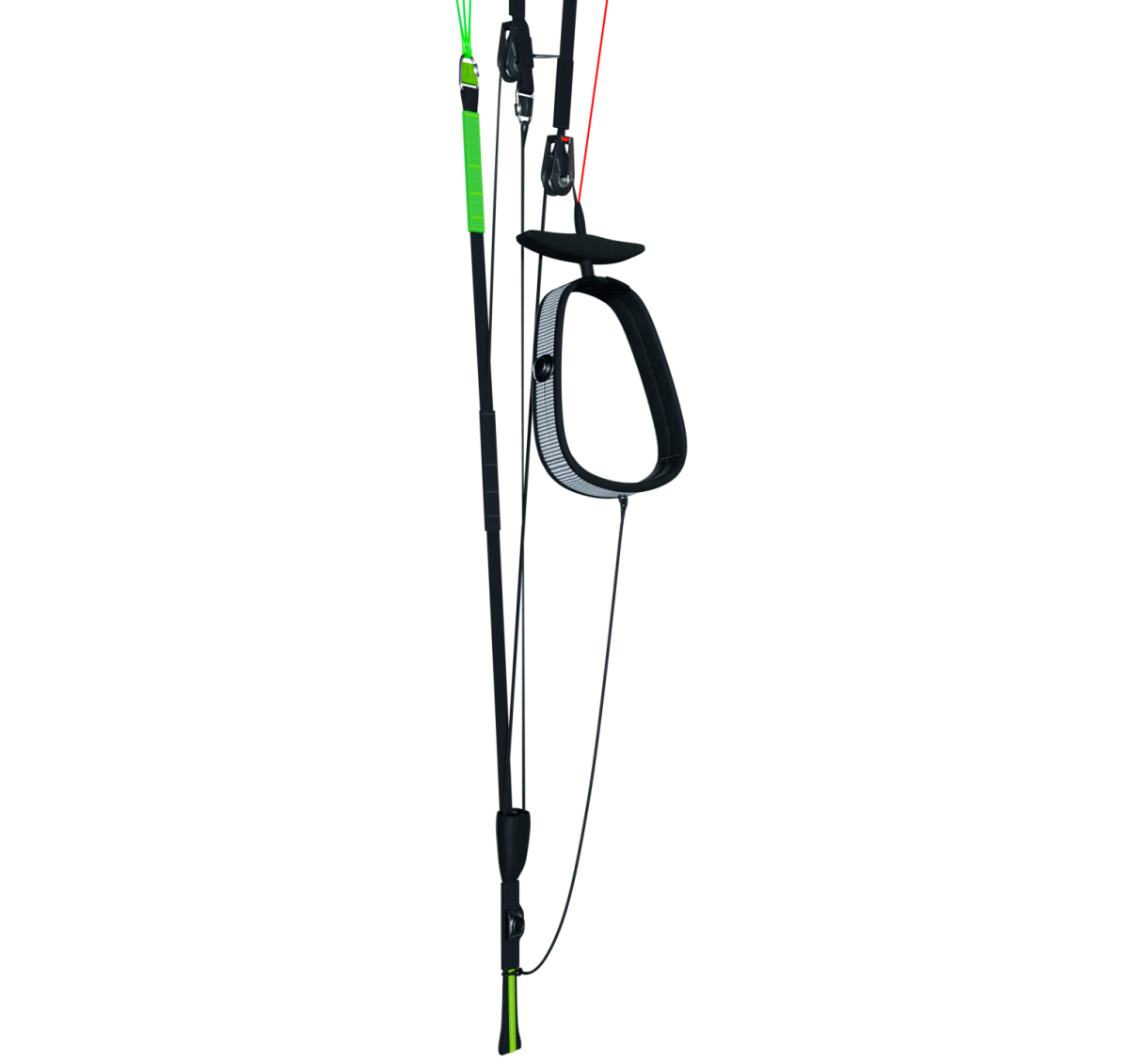 En relevant les mains, la voile accélère et plonge. En abaissant les mains, le système modifie progressivement le calage et ralentit la voile. En position neutre, elle atteint sa finesse max.