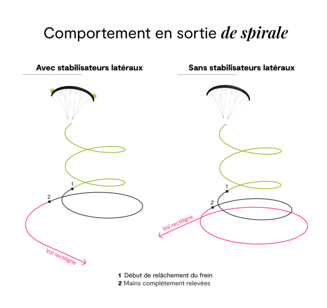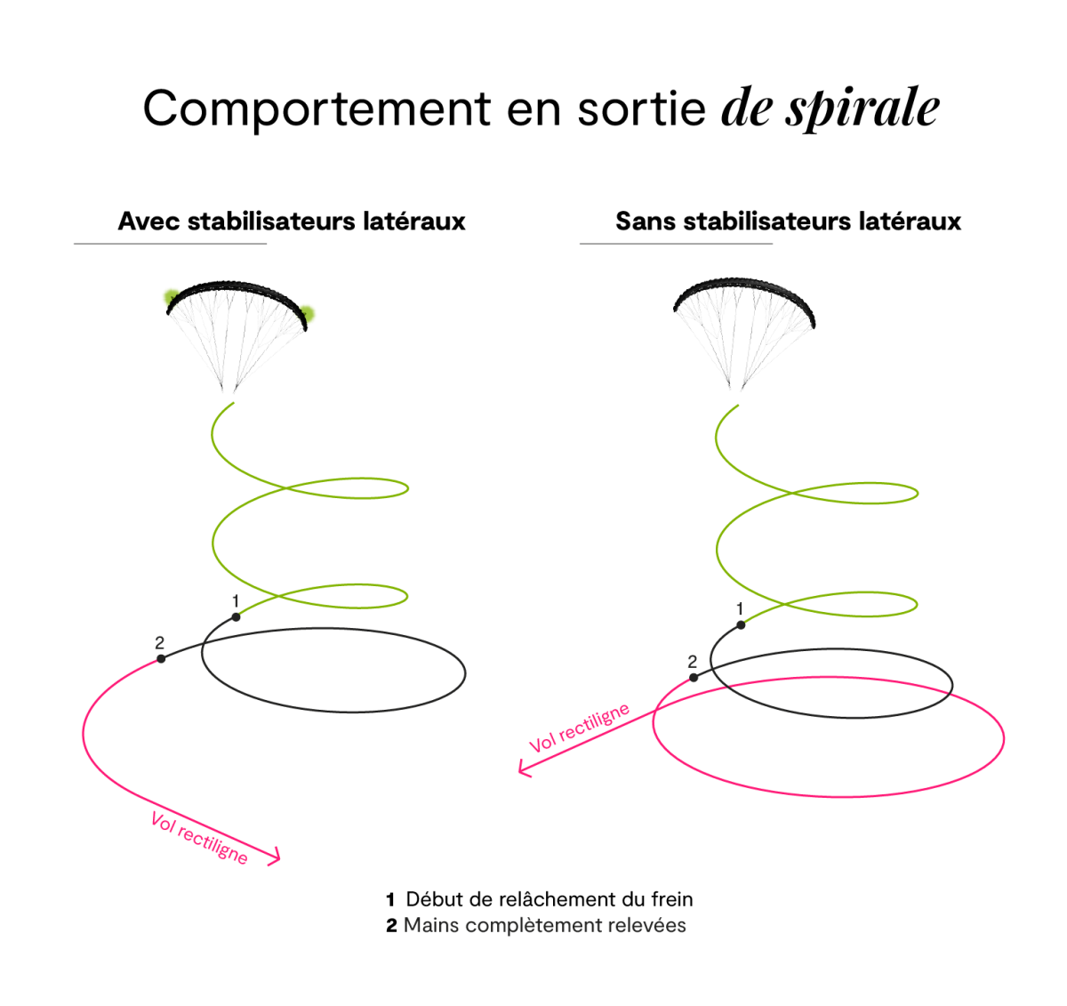 La position, la taille, l’orientation et le profil optimisé des stabilisateurs latéraux améliorent la sortie de la spirale et diminuent le roulis parasite très nettement.