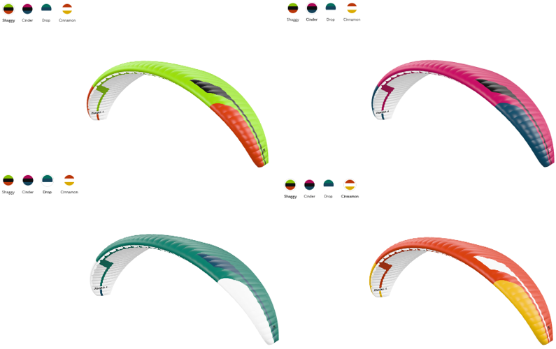 Différents tissus ont été combinés pour équilibrer la durabilité et la résistance de l'aile sans compromettre sa légèreté. Les tissus Dokdo 40 et 36 g ont été utilisés sur l'extrados pour plus de robustesse, l'intrados est quant à lui conçu avec du Dokdo 32 g. Les cloisons utilisent une combinaison de Dokdo 40 et 32 g. Toutes les suspentes sont gainées pour offrir plus de durabilité et de performance.